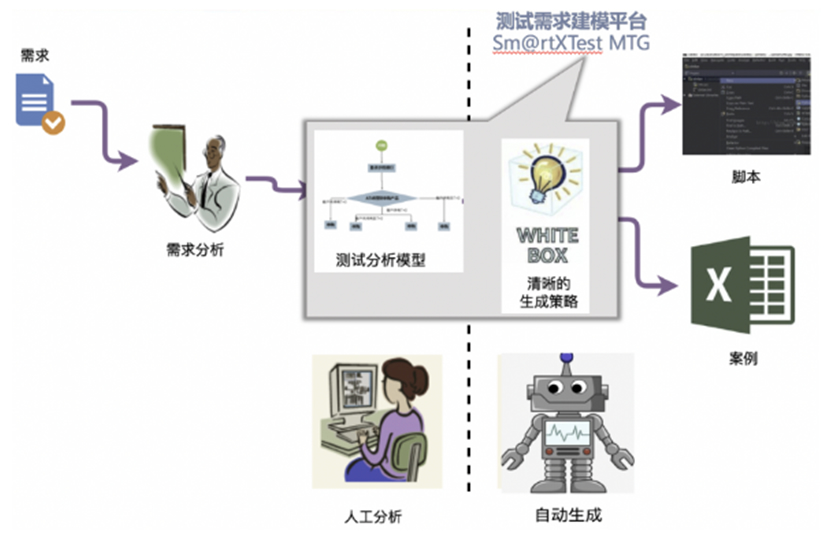 产品通过业务规则分析、、、、流程图分析等方式对测试需求进行建模,,,,通过案例生成引擎生成案例,,生成案例效率高,,,,且生成的案例能够在保证测试覆盖度的基础上减少案例冗余,,,案例质量高,,,,可读性强,,,可直接用于测试执行。。