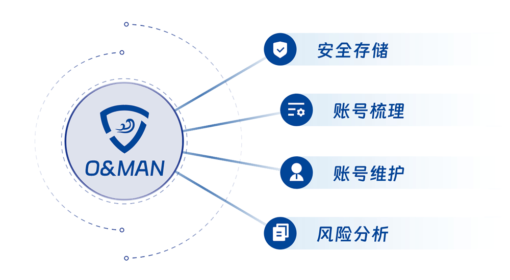 实现了从账号梳理到账号存储全生命周期的闭环管理,,包括账号梳理、、、、风险分析、、、账号存储等账号管理功能。。。账号梳理模块,,,,可以自动化的按照网段批量地进行账号以及账号属性的采集;风险分析可以按照内置的风险检测规则、、、自定义的弱密码规则等进行账号风险的分析,,发现账号台账中的弱密码账号、、、、提权账号等账号风险问题,,,通过账号维护模块中的账号工单、、密码修改等进行账号的维护管理以解决账号风险;账号存储可以存放进具备国密加密芯片,,独立硬件部署的密码保险箱,,,,以确保账号密码存储的安全。。。