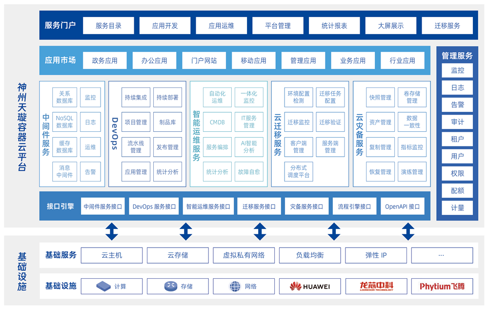 全栈自主可控的企业级容器云服务平台,,开箱即用的企业级多云管理、、、、业务迁移上云、、云上开发测试、、、运维管理及容灾备份功能特性,,模块化按需部署,,,,降低建设成本,,,,随业务需求灵活扩展。。
