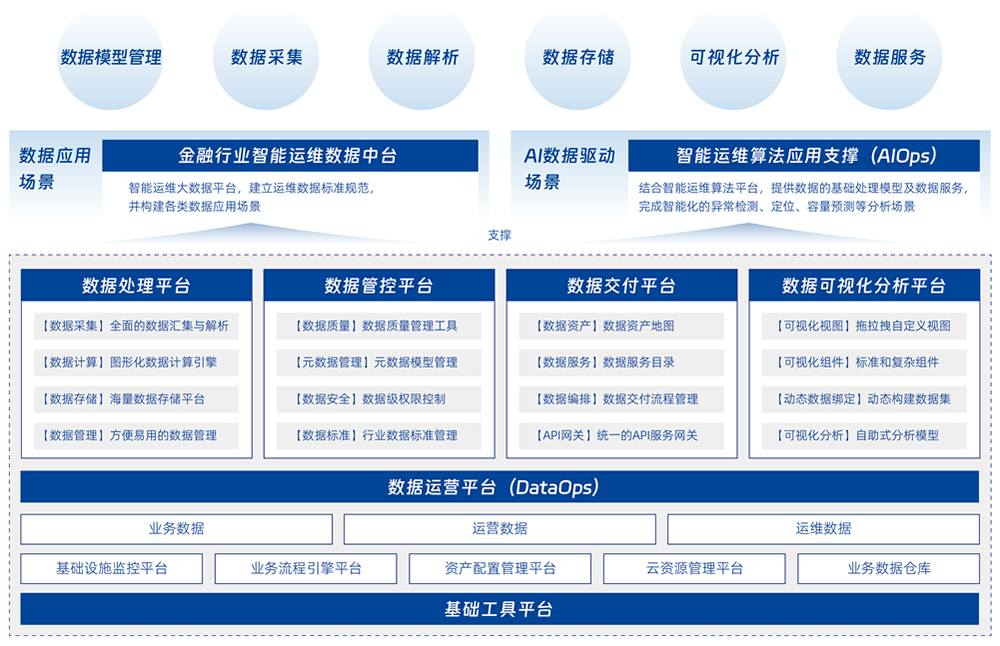 通过平台整合各种运维工具的数据和服务能力,,在保证数据隐私和安全的前提下,,通过大数据技术等手段,,,来解决 IT 系统运行过程中产生的海量数据分析问题,,,并将分析结果通过数据共享服务提供给各类上层应用,,,,帮助 IT 运维和管理人员全面了解系统运行状态,,,,提升可用性。。。。