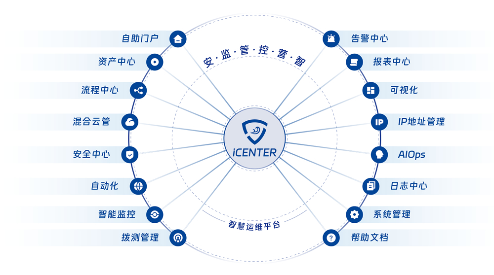 这是一款拥有自主知识产权及专利的产品。。。创新地将安全服务与尊龙时凯传统核心运维服务有机的融合,,打造出集“安、、监、、、、管、、控、、、营、、智”为一体的智慧运维平台。。。。其中的安全中心模块已形成了以运维账号统一管理为基础,,覆盖运维安全审计、、网络流量分析、、、云安全等众多运维场景的安全能力。。。。